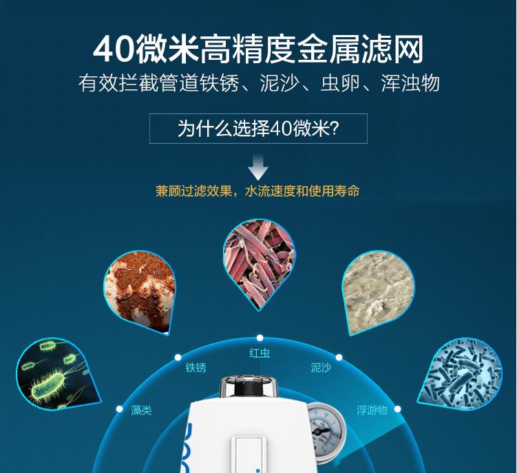 攔截管網(wǎng)二次污染產(chǎn)生的顆粒性雜質(zhì),保護(hù)家庭設(shè)備免受損壞及維修。
