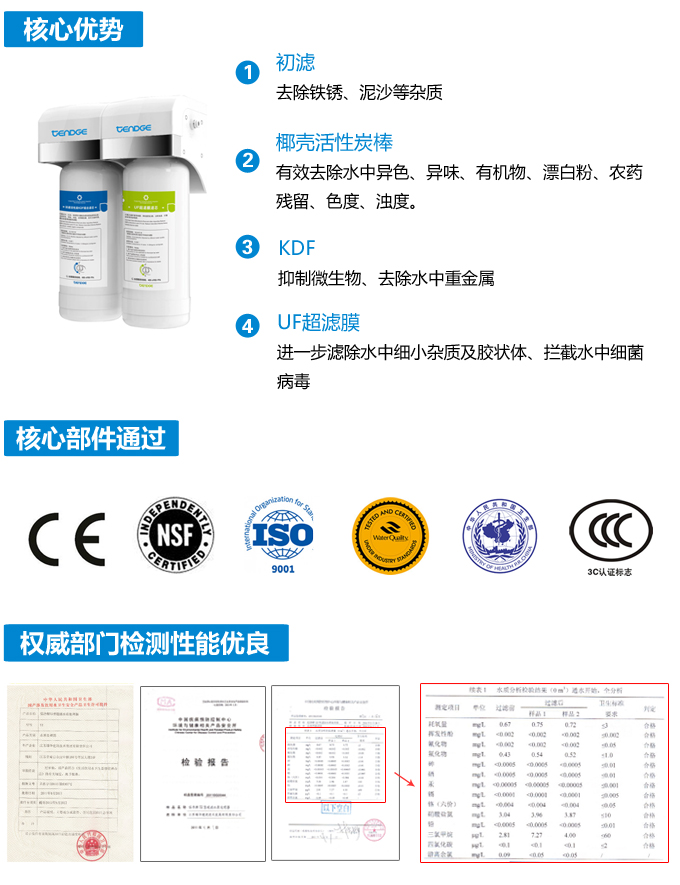 有效去除水中的異色、異味、余氯、細菌病毒等;同時保留對人體有益的礦物質。可用于燒飯、燒湯、喝水、洗水果等。